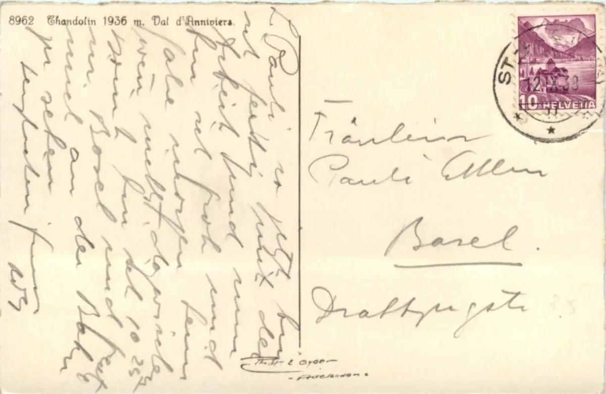 Danke. Alles Bestens. Können Sie mir allenfalls mitteilen, aus welchem Jahr die Postkarte stammt? Besten Dank.