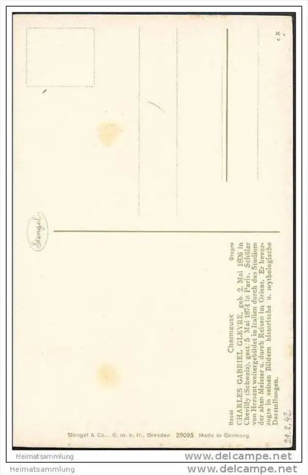 Charmeuse - Charles Gabriel Gleyre - Stengel 29095 - Nackte Frau - Flöte spielend - rückseitig Klebestellen (G21772) *