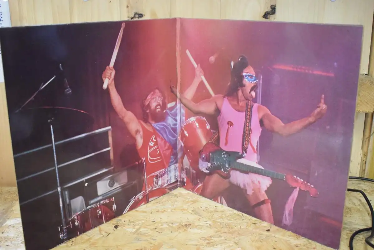 Cover mit etwas deutlicheren , umlaufenden Gebrauchspuren an Ecken und Kanten und leichten Abschürfungen auf den Flächen , LP ebenfalls mit etwas deutlicheren rein oberflächlichen Gebrauchspuren , spielt noch sehr gut .