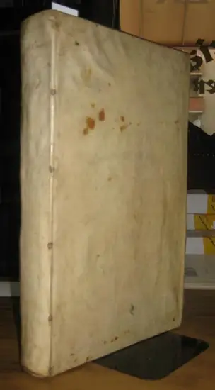 Freie Beschreibung: Folio ( 34,5 : 22,0 cm). Original-Ganzpergamentband auf sechs durchgezogenen Bünden und mit spanischen Kanten. Dreiseitenrotschnitt. Verblasster handschriftlicher Rückentitel. Das Pergament etwas fleckig und angeschmutzt. (12), 820, (76) Seiten mit gestochener Titelvignette. Ca. 50 - 60 der Seiten mit Unterstreichungen in alter Tinte, jeweils nur wenige Wörter bis ca. 4 Zeilen. Eine Wurmspur bis ca. 1,4 cm Länge am unteren Rand (kein Textverlust), teils nur mit kleinen Löchlein (Beginn des Buches bis ca. S. 380). Eine kleine Fehlstelle am unteren Rand (kein Textverlust) auf den S. 183/184. Das Papier nur in den Randbereichen gelegentlich schwach fleckig. Insgesamt altersgemäß gut erhalten