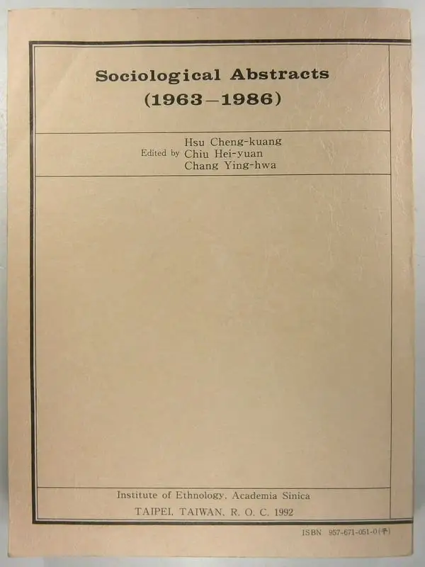 Cheng-kuang, Hsu / Hei-yuan, Chiu / Ying-kwa, Chang (Edit.): Sociological Abstracts (1963-1986).
