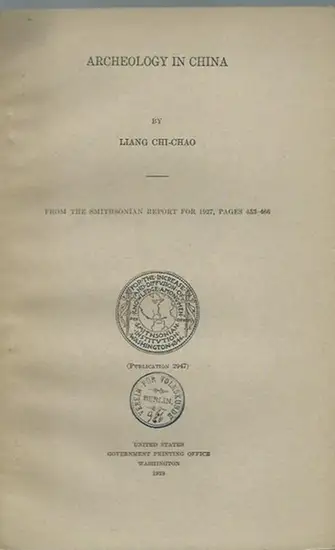 Chi - Chao, Liang: Archeology in China. From the Smithsonian Report for 1927.
