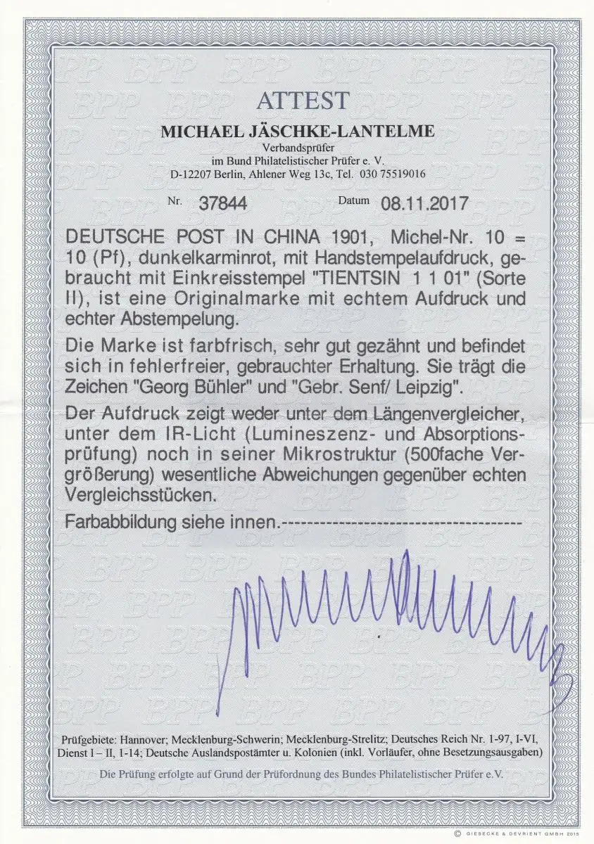 Chine: Min. 10, Tientsin, variété II, BPP Attest