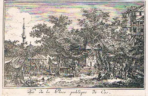 Choiseul-Gouffier, Marie Gabriel Florent Auguste de (1752-1817),, Vue de la Place publique de Cos. Kupferstich aus dem 1. Band der "Voyage Pittoresque de la Grèce" von Francois Decquevauvillier nach einer Zeichnung von Jean-Baptiste Hilair