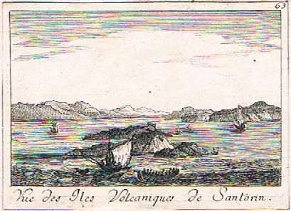 Choiseul-Gouffier, Marie Gabriel Florent Auguste de,, Vue de la côte de Santorin. Kupferstich Nr. 63 aus dem 1. Band der "Voyage Pittoresque de la Grèce" von Francois Decquevauvillier nach einer Zeichnung von Jean-Baptiste Hilair