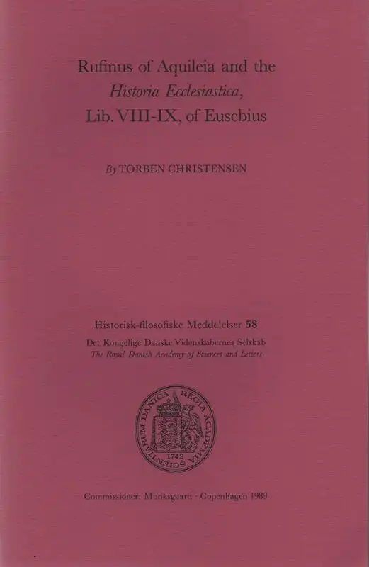 Christensen, Torben: Rufinus of Aquileia and the Historia ecclesiastica, Lib. VIII - IX, of Eusebius. (Historisk-filosofiske meddelelser ; 58).
