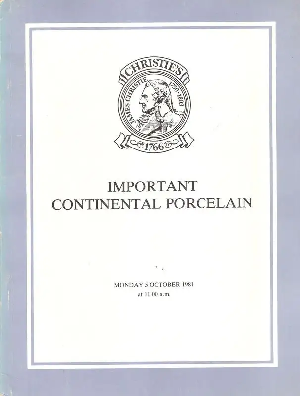 Titel: Important Continental Porcelain. Auktion: Christie, Manson & Woods : 5.10.1981. The Properties of Lady Beale, Mrs. M. A. Stevens, The Trustees of The Stoneleigh Settlement and from various sources