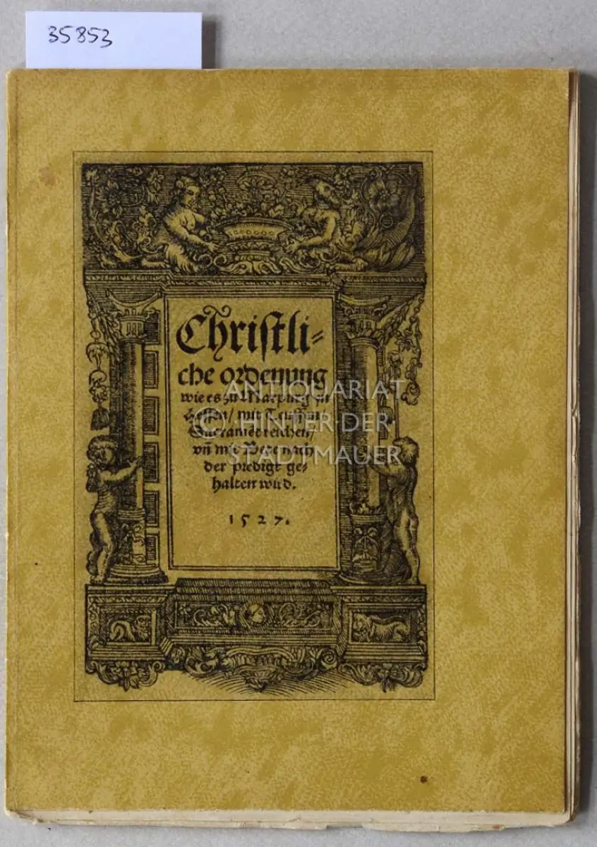 Titel: Christliche Ordenung wie es zu Marpurg yn Hessen mit Teuffen, Sacramentreichen, und mit Beten nach der Predigt gehalten wird. 1527. Zur 400-Jahrfeier der Universität Marburg nach 400 Jahren wiedergedruckt von Karl Gleiser in Marburg a.d. Lahn