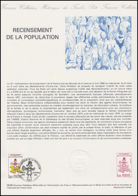Journal officiel commémoratif de la poste française en édition limitée avec édition originale de timbres, cachet correspondant et impression noire de l'original d'impression Test: original Référence produit: 00000000050165