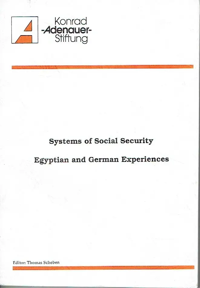 guter bis sehr guter Zustand, geringe Gebrauchs- und Alterungsspuren: Umschlag und Seiten teils etwas eselsohrig, PREFACE Dr. Thomas Scheben: Representative of Konrad-Adenauer-Foundation in Egypt - INTRODUCTION TO THE CONFERENCE Prof. Dr. Heba Handoussa, Economic Research Forum - ECONOMIC LIBERALIZATION AND PROBLEMS OF SOCIAL POLICY IN EGYPT Prof. Dr. Saad Z. Nagi, Social Research Center, American University - THE SYSTEM OF SOCIAL SECURITY IN GERMANY Prof. Dr. Winfried Schmähl, University of Bremen - Discussion - THE LABOR MARKET IN EGYPT Prof. Dr. Nagla EI-Ahwany, Cairo University - THE GERMAN LABOR MARKET AND THE FEDERAL INSTITUTE OF LABOR Dipl.Vw. Peter Clever, Ministry for Social Affairs and Labor - HEALTH AND CASUALTY INSURANCE IN EGYPT Dr. Samir Diaey, Doctors' yndicate - THE STATUTORY HEALTH INSURANCE SYSTEM Dipl. Vw. Peter Clever, Ministry for Social Affairs and Labor - SOCIAL SECURITY FOR THE LOWER STRATA OF THE WORKING POPULATION Dr. Adel Azer, UNICEF - SOCIAL ASSISTANCE Dipl. Vw. Peter Clever, Ministry for Social Affairs and Labor - OLD AGE INSURANCE IN THE EGYPTIAN SOCIAL INSURANCES SYSTEM Mohamed Rashad Zaki Hanafi, Dir. of the Central Dept. for Legal Affairs at the National Organization for Social Insurance - THE SOCIAL SECURITY SYSTEM IN EGYPT Dr. Nabil Hakam, Nasser Bank - OLD AGE SECURITY IN GERMANY - PUBLIC AND OCCUPATIONAL PENSION Prof. Dr. Winfried Schmähl, University of Bremen - ALTERNATIVE SOCIAL SECURITY SYSTEMS Ahmad El-Sakka, Arab-African International Bank - ACCIDENT INSURANCE Dipl. Vw. Peter Clever, Ministry for Social Affairs and Labor - STRUCTURAL AND FINANCIAL REGULATIONS OF SOCIAL SECURITY SYSTEMS IN EGYPT AND GERMANY Prof. Dr. Borham M. Atallah, Prof. of Civil Law, Alexandria University and Chairman of Al-Chark Insurance Company - ORGANIZATIONAL STRUCTURE AND FINANCING OF SOCIAL SECURITY Prof. Dr. Winfried Schmähl, University of Bremen - Appendix: Table and Figures to the Lectures of Dr. Winfried Schmähl, kartoniert, ca. 16,5 x 24, 197 Seiten