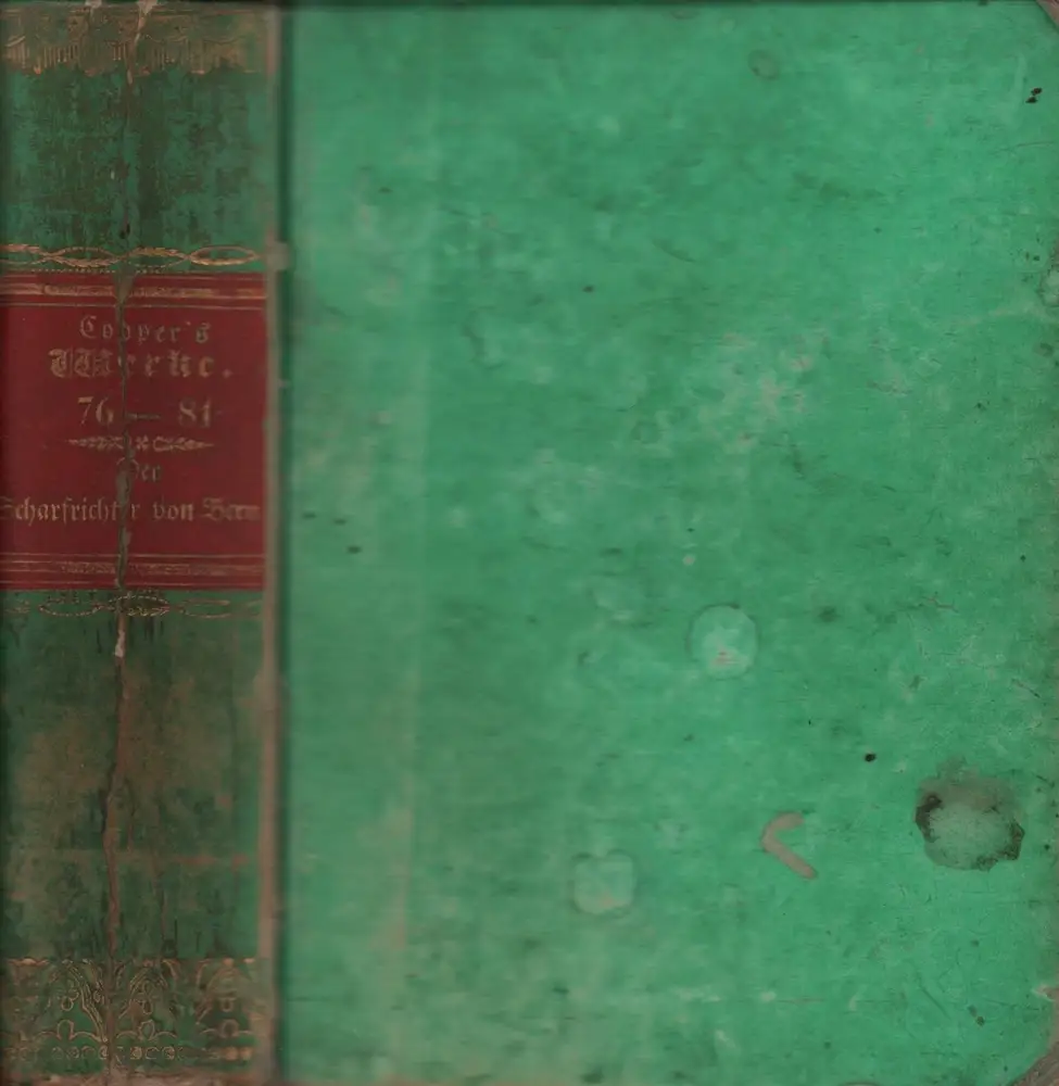 Frankfurt a. M. Johann David Sauerländer, 1833, 344, 8 AnzeigenS.; 330, 3 AnzeigenS. (= Cooper's sämmtliche Werke [Hrsg. von Christian August Fischer], Bde. 76-81). Kl.-8vo. 13,5 cm. Hellgrüne OPp mit altrotem Rsch und rotem Farbschnitt.