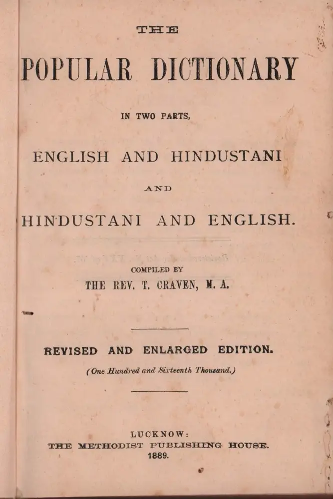Craven, T. (Hrsg.): The Popular Dictionary in two parts, English and Hindustani, and Hindustani and English. 2 Tle.in 1 Bd. Revised and enlarged edition. (Mit einem Vorwort von B. H. Badley). 116. Tsd.