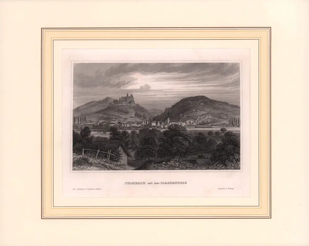 Culmbach mit der Plassenburg. Stahlstichansicht