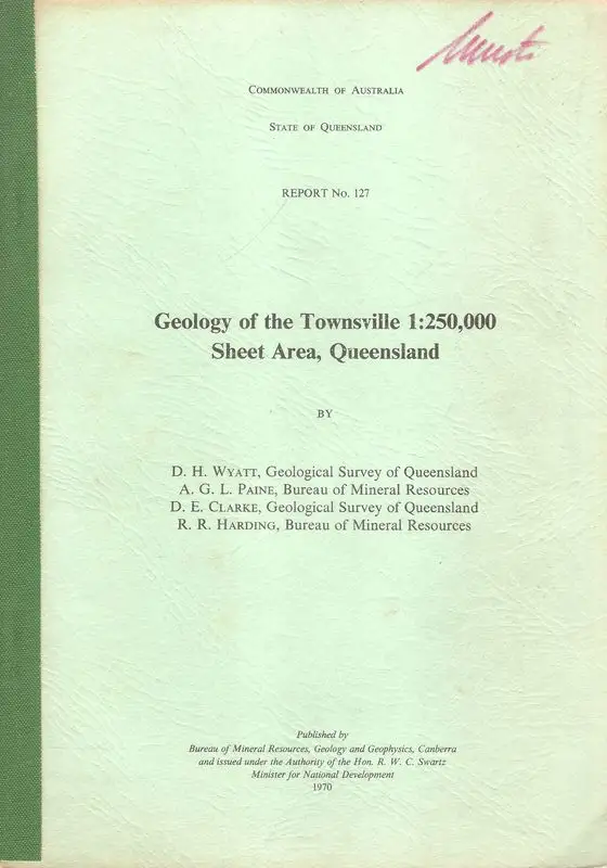 Titel: Geology of the Townsville 1:250,000 sheet area, Queensland. (Report / Commonwealth of Australia, Department of Resources and Energy, Bureau of Mineral Resources, Geology and Geophysics. Nr.127)