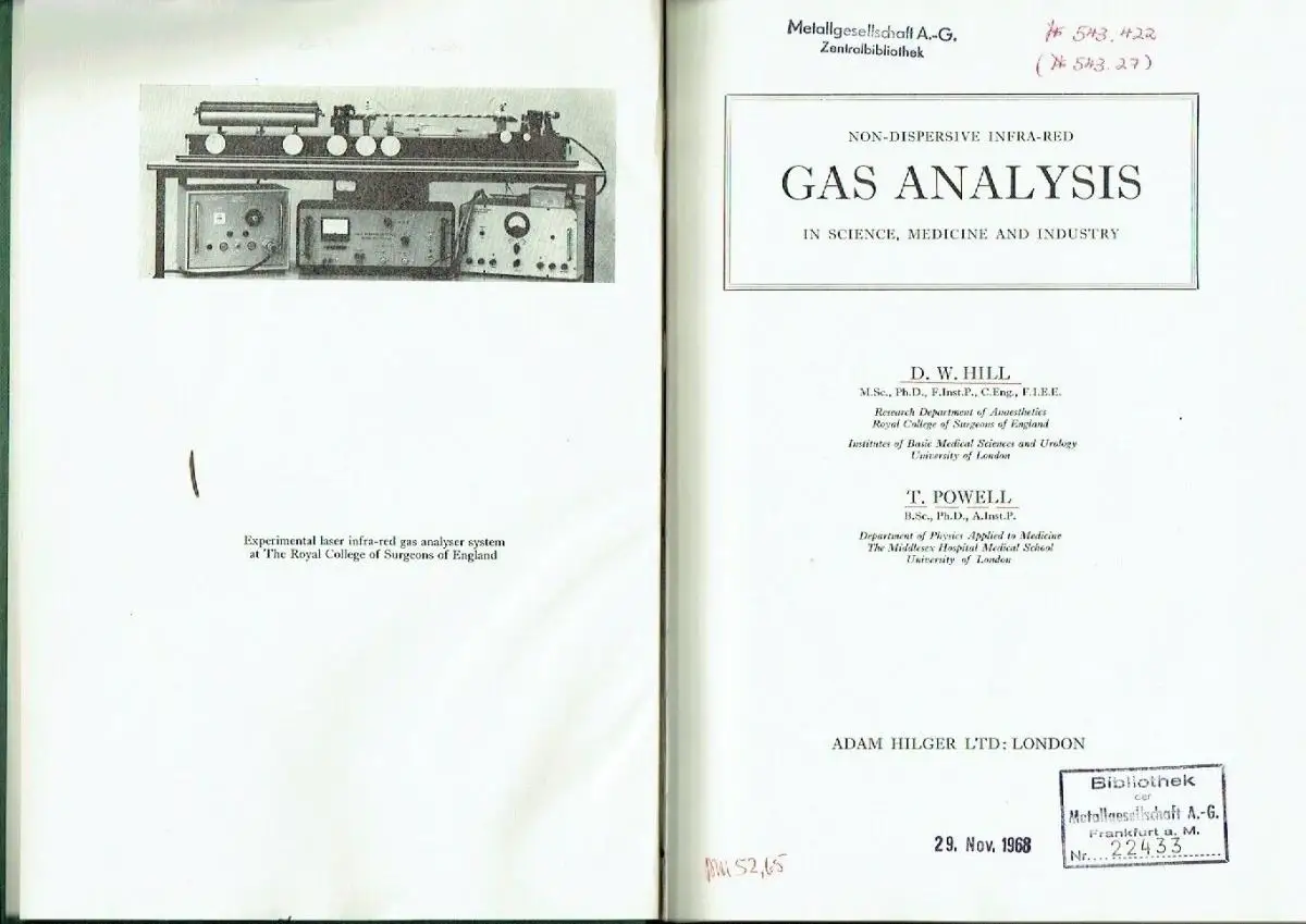 guter Zustand, Gebrauchs- und Alterungsspuren: ehemaliges Bibliotheksexemplar - Deckel leicht gewölbt - Titel mit Stempeln und Notizen - Deckel innen mit angeklebtem Papierrest - Vorsatz und Schmutztitel mit weiterem Stempel - Seiten aber sauber und ordentlich - obere Ecke der Rückseite etwas gestaucht / angeknickt, Non-dispersive infra-red gas analysers are widely used in both laboratories and industrial plants. However, as far as the literature is concerned, they have tended to be somewhat the Cinderella of infra-red instruments. The increasing availability of devices such as optical interference filters, photoconductive infra-red detectors and field-effect transistors has had a profound effect upon the style of non-dispersive gas analysers now becoming commercially available. Our interest in infra-red gas analysers stems from the requirement to analyse anaesthetic gases and vapours in hospitals during surgery. This leads to the design of an analyser which is free from microphony, can be operated in an explosive atmosphere, can be powered from a low voltage supply, and has the facility for separating the read-out from the optical system. The investigation of the various alternatives available to fulfil this specification has made us many friends in the infra-red industry, and has finally led to our interest in laser sources and YlG modulators. The good wishes and advice of that pioneer in the field of infra-red gas analysis, K-F. Luft, are gratefully acknowledged. The book was written during the time when both of us were working together at the Royal College of Surgeons. It could never have been completed without a great deal of assistance from many companies in the United Kingdom, France, East and West Germany, and the United States of America. To all who have so willingly discussed the design of their instruments and calibration methods we should like to offer our grateful thanks- Our own investigations have been financed by the Royal Society of London, the Medical Research Council and the Science Research Council. Professor J- P- Payne has afforded us the laboratory facilities of the Research Department of Anaesthetics at the Royal College of Surgeons of England, and our colleagues on the staff have assisted with the experiments and provided much constructive comment. "In many branches of science, non-dispersive infra-red gas analysis is practised, and in spite of the existence of many competing measuring methods the field of its application is still widening. In the sphere of the large-scale chemical industry in Western Germany alone more than 2000 infra-red analysers are used at present to solve many analytical problems. Again and again, new, interesting and important possibilities of application are opened, e.g., in the fields of biology and medicine, the prevention of air pollution, and also in the mining industry. Although a copious literature on the methods and tools of non-dispersive infra-red analysis has been published in scientific journals in the course of the thirty years which have passed after their first technical application, no comprehensive survey in the form of a book has been devoted so far to this subject. This seems surprising, but it may be due essentially to the particular difficulties of classifying the various results and analysing them systematically in order to attain to generally valid conclusions relevant to all forms of application. It is the merit of the authors of this book that they have undertaken this laborious task so as to close a long-felt gap of information on this subject. lt is true that a reader like myself, who has been active in this field from the very beginning and, therefore, probably inclined to see many things too much from his own viewpoint, would have preferred here and there a different classification and appreciation of the subject matter- To the large number of people, however, who practise non-dispersive infra-red gas analysis, this book will certainly render valuable service if they wish to get more detailed information on principles and possibilities without being still compelled to go back to the original literature. Thus, good success and a large propagation should be wished to the book.", Leinen, ca. 18 x 25, 222 Seiten mit 147 Bildern, Schaltzeichnungen und Grafiken
