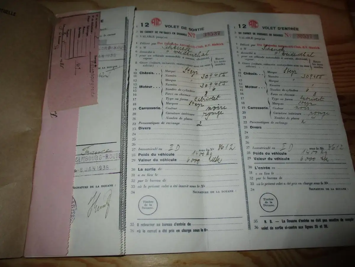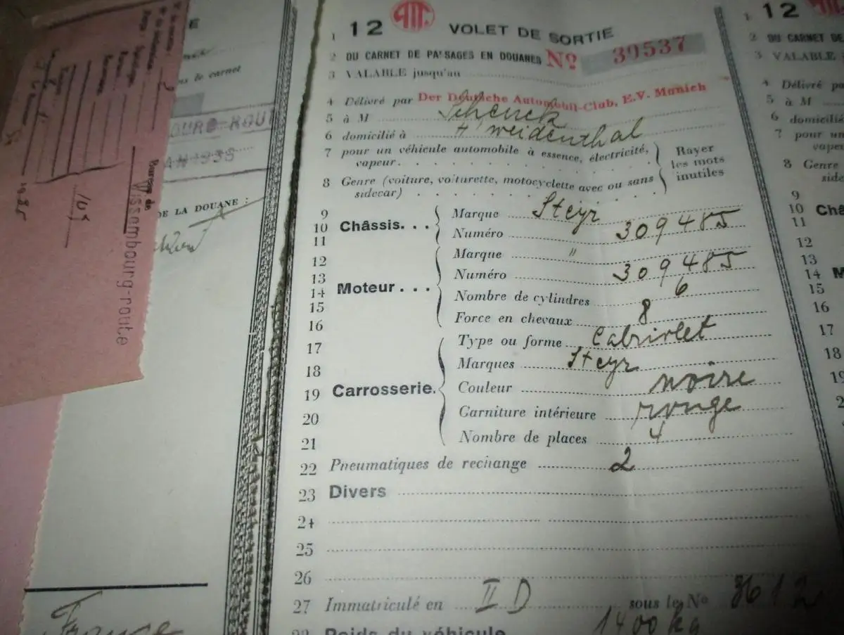 DDAC München , 1936 , Steyr Fahrausweis , F. Schenck in Hinterweidenthal b. Hauenstein , Ausweis , Automobile , Egypt !!