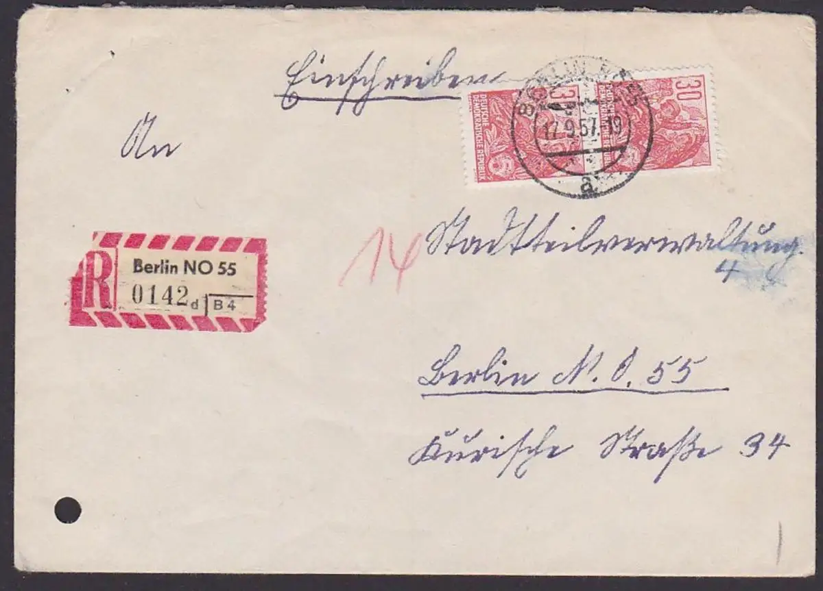DDR 1956 BERLIN NO 55 Orts-RBf 30 Pf(2) 5-Jahrpl, Volkstanz (MiNr.416)