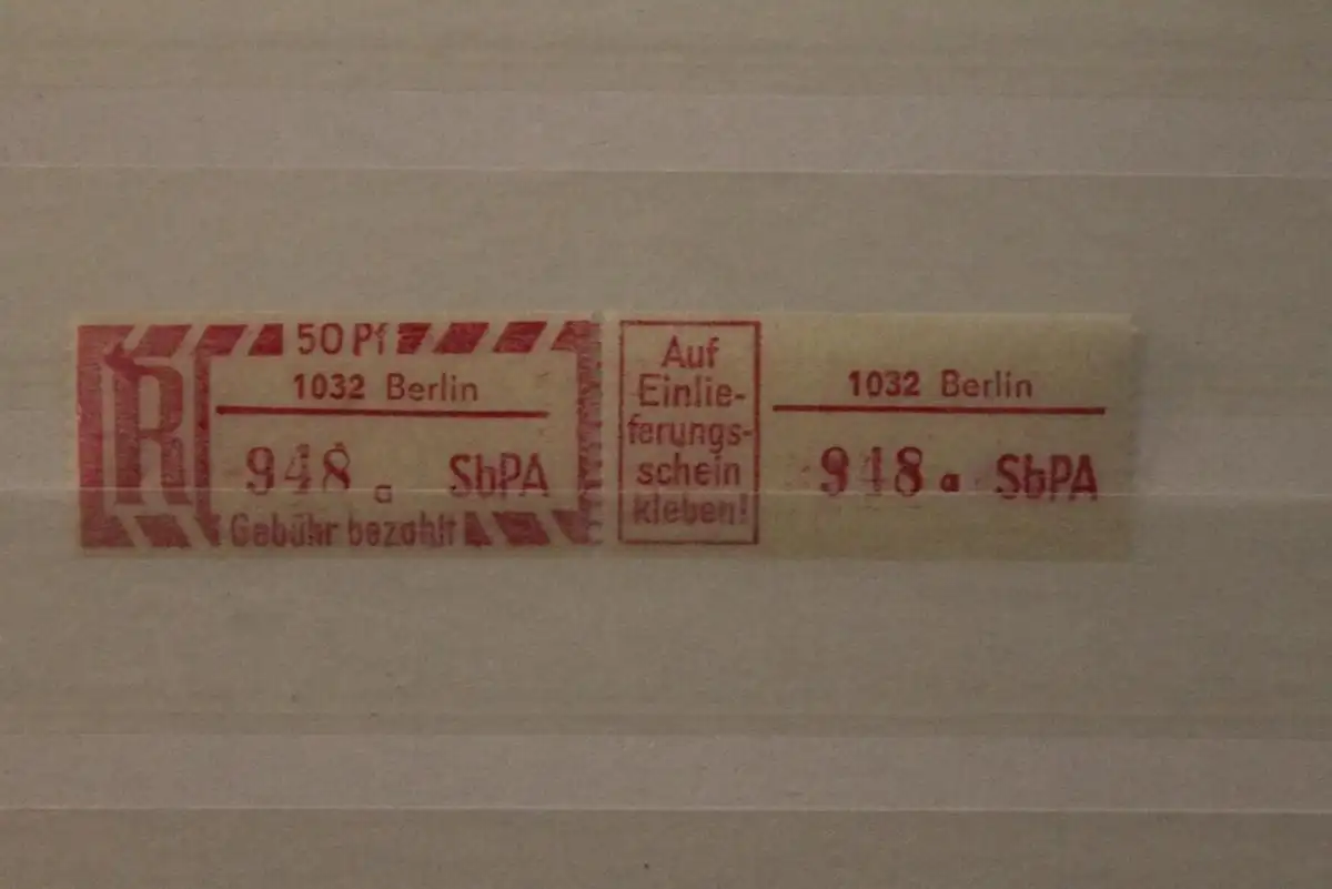 DDR 1968 SbPA Einschreibemarke Gebührenzettel 2C; a, 1032 Berlin, **Z