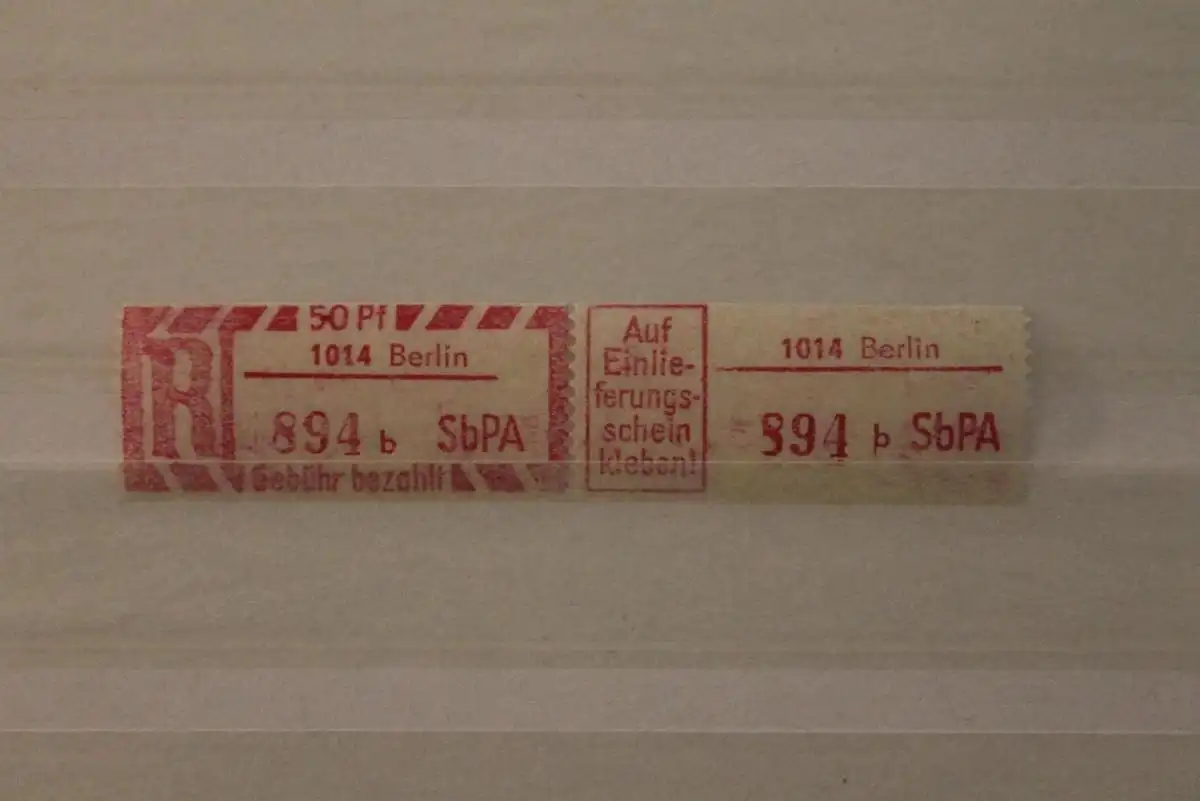 DDR 1968 SbPA Einschreibemarke Gebührenzettel 2C; b, 1014 Berlin, **Z