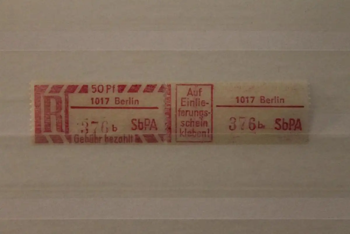 DDR 1968 SbPA Einschreibemarke Gebührenzettel 2C; b, 1017 Berlin, **Z