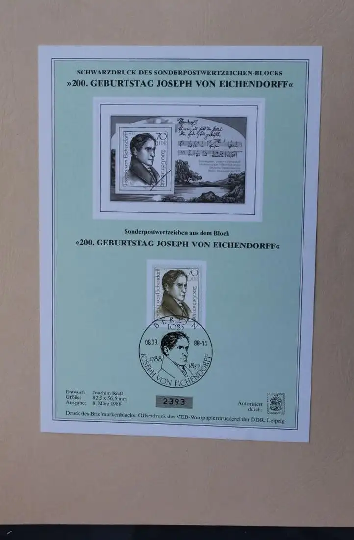 DDR 1988, Joseph von Eichendorff, MiNr Block 92, mit Schwarzdruck