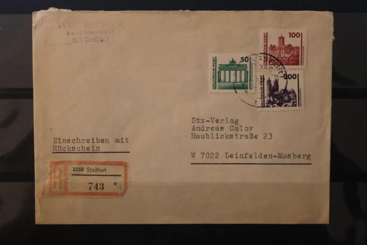 DDR 1990, R-Brief, Bedarfspost, Frankatur Gebäude und Denkmäler