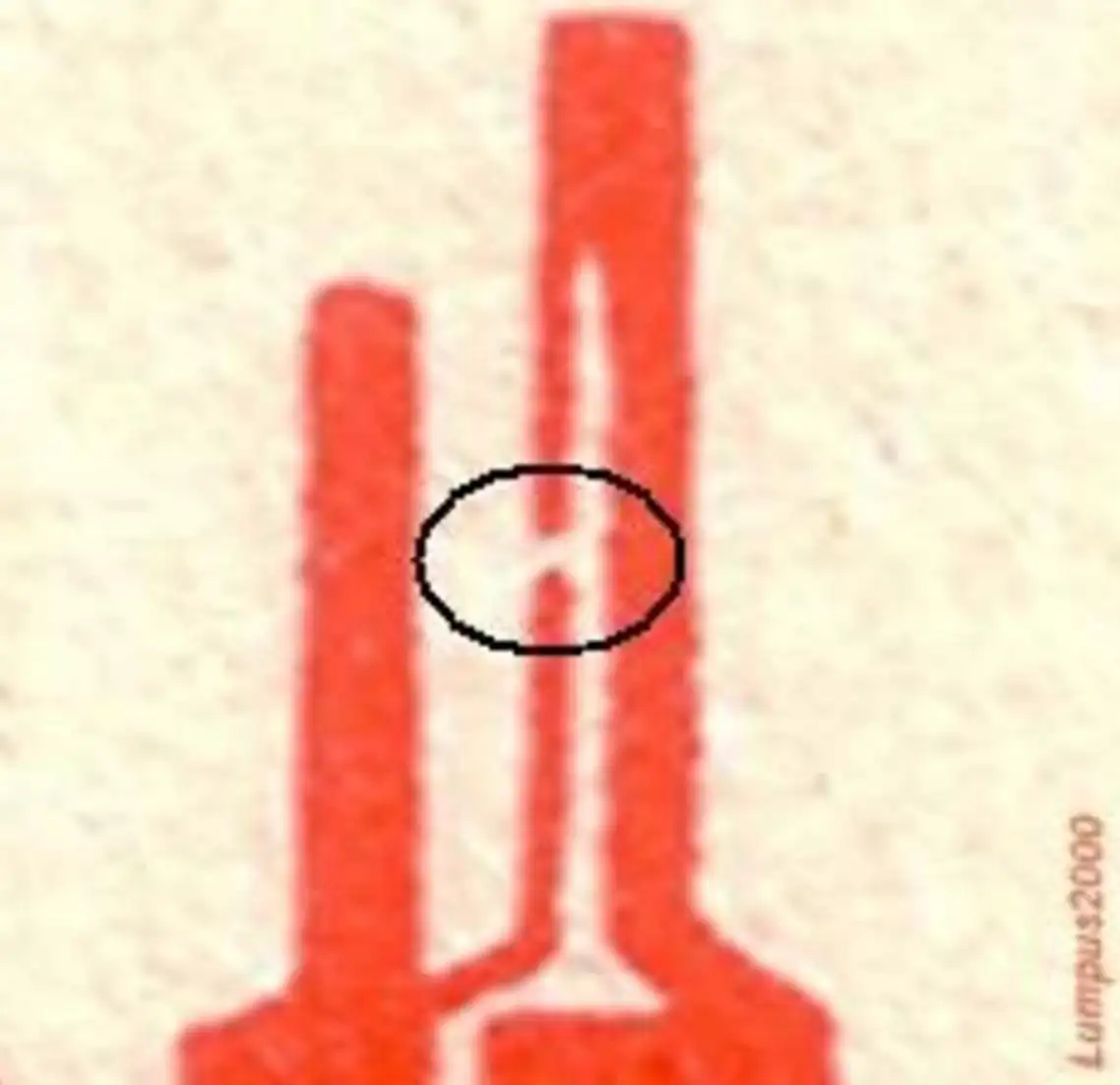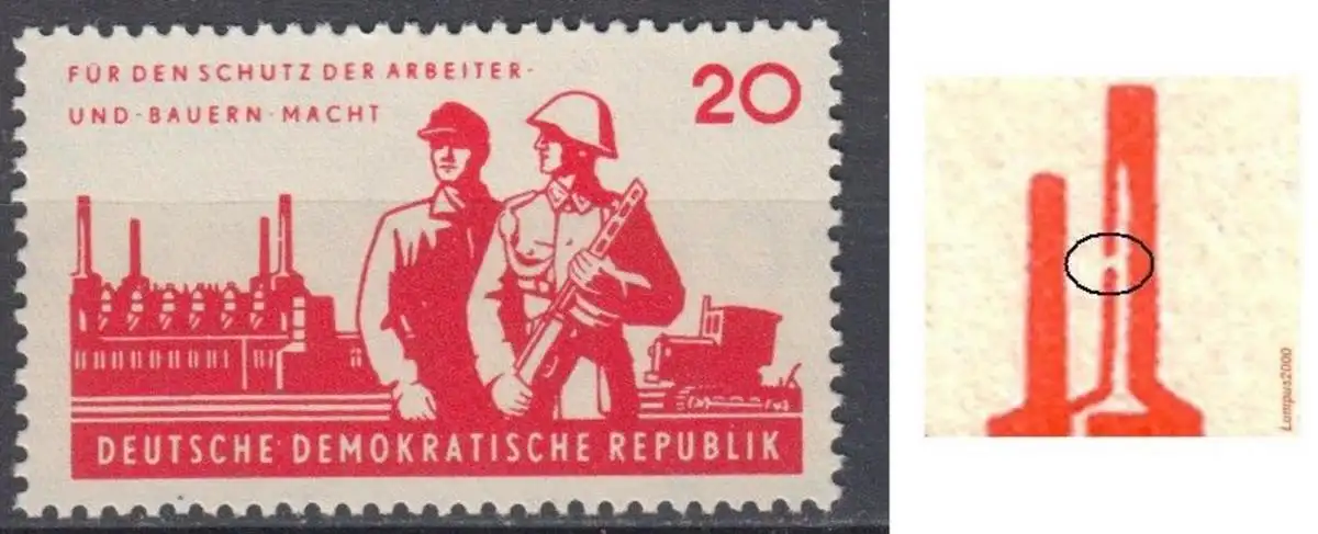 Im ersten Bild sehen Sie eine vergrößterte Beispielabbildung des Fehlers, im zweiten Bild die zu ersteigernde Briefmarke