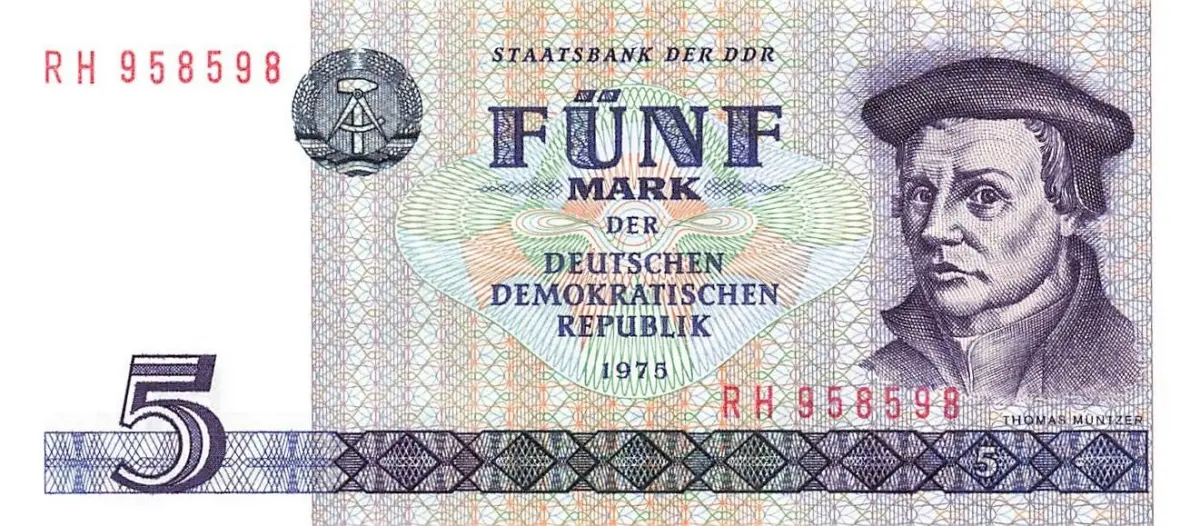 Original DDR Banknote 5 Mark 1975 Thomas Müntzer Ro: 361 KASSENFRISCH / UNC Zustand: Kassenfrisch Echtheit wird garantiert.