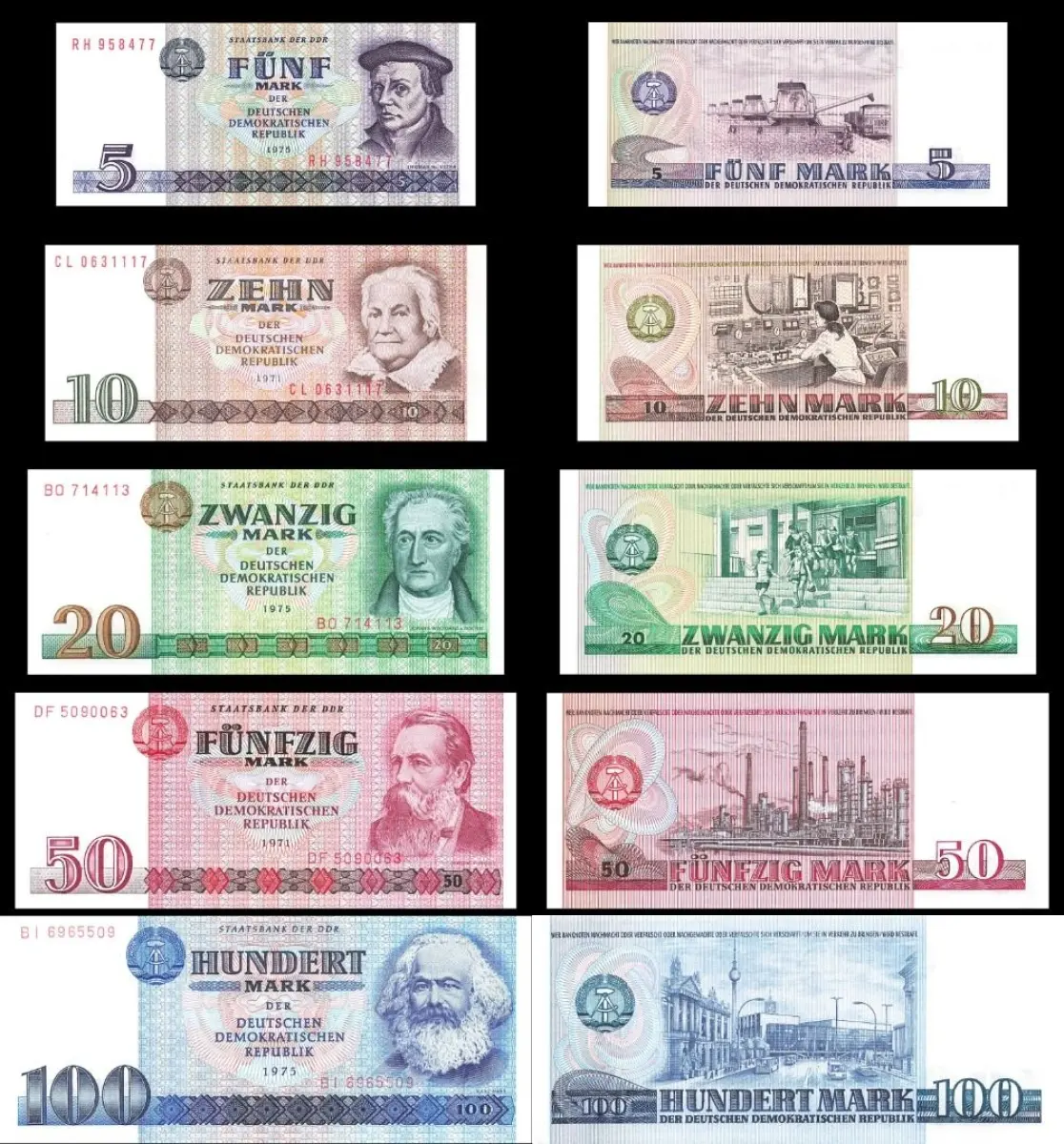 DDR Banknoten Satz 5 ,10, 20, 50 + 100 Mark 1971 bis 1975 UNC / Kassenfrisch