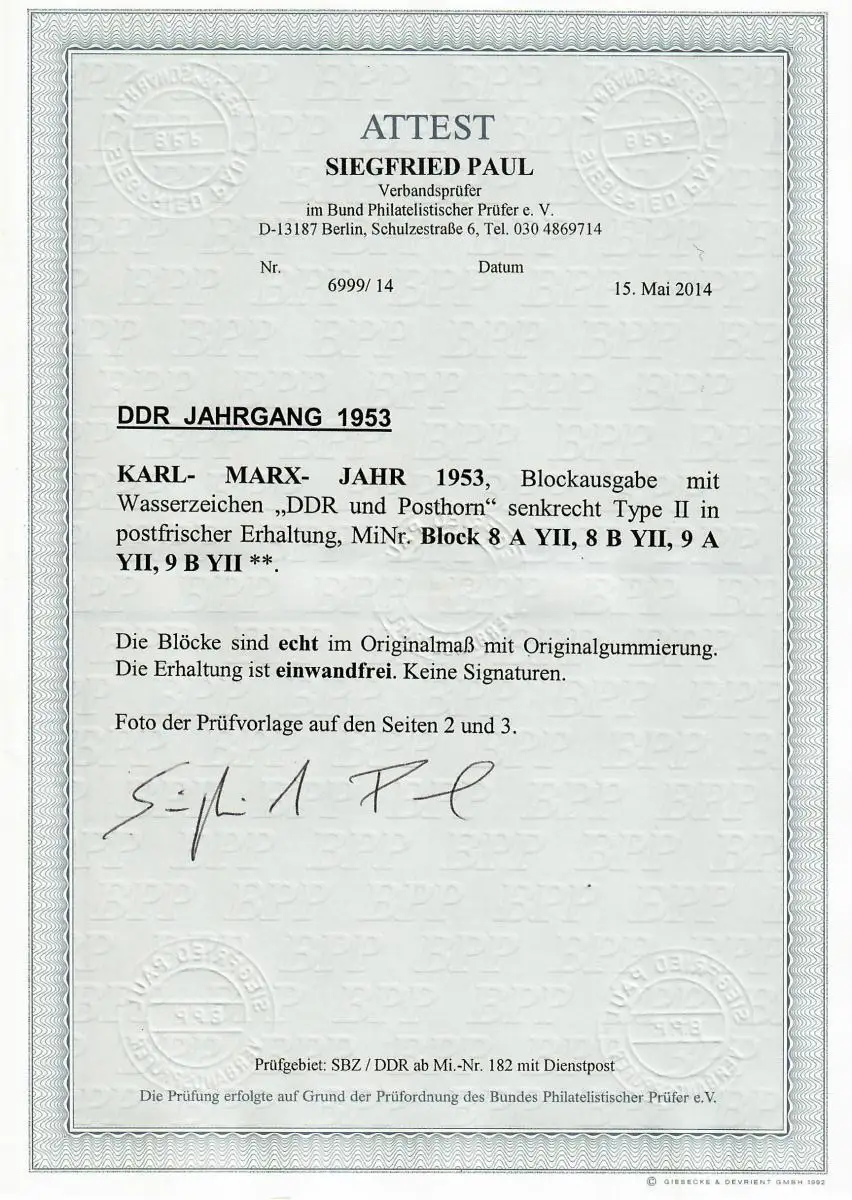 DDR: blocs MiN° 8A+B YII, 9 A+ B Y II, frais, **, BPP Attest