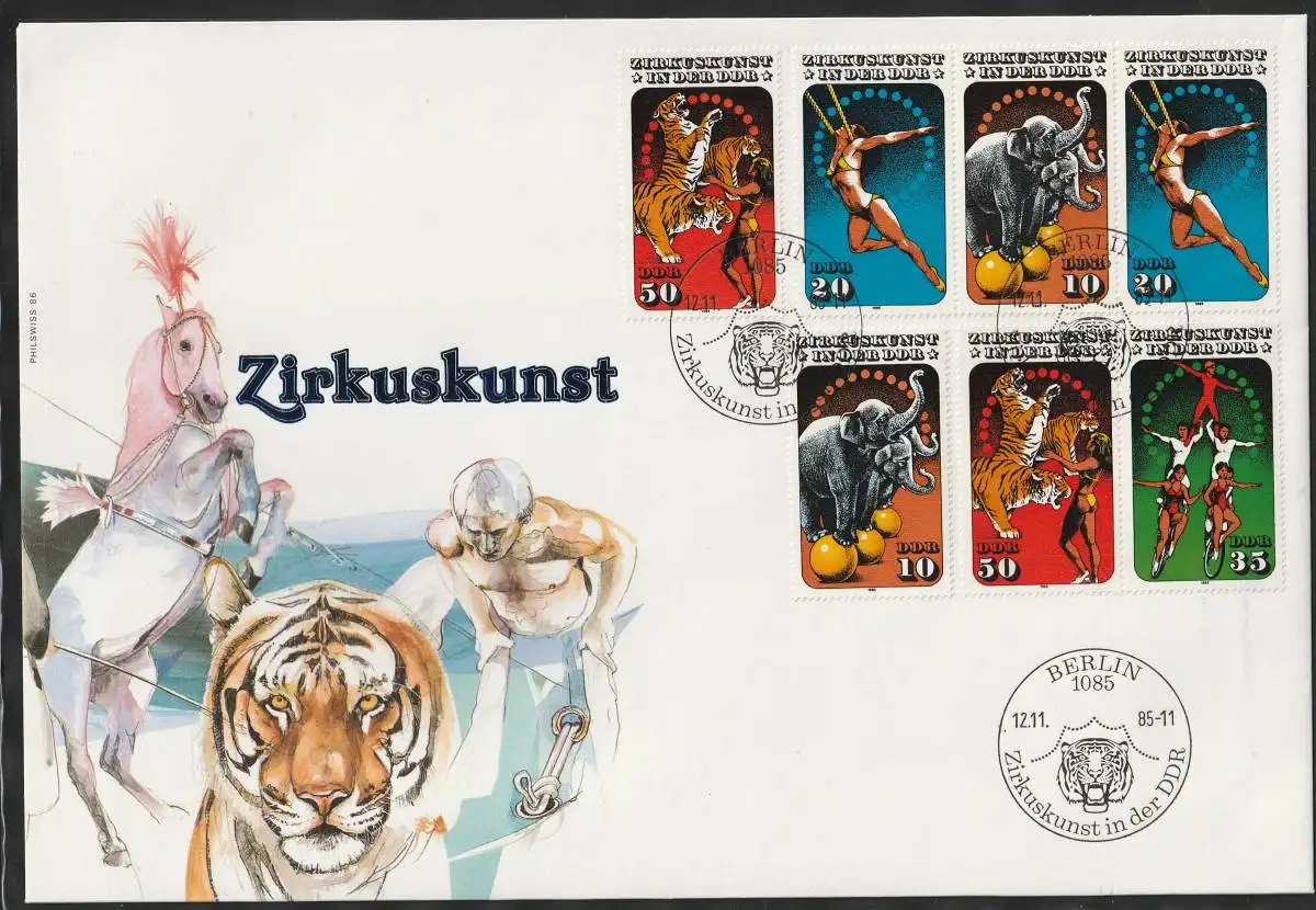 DDR-FDC; Zirkuskunst - Schmuckumschlag mit W ZD 648 u.a.