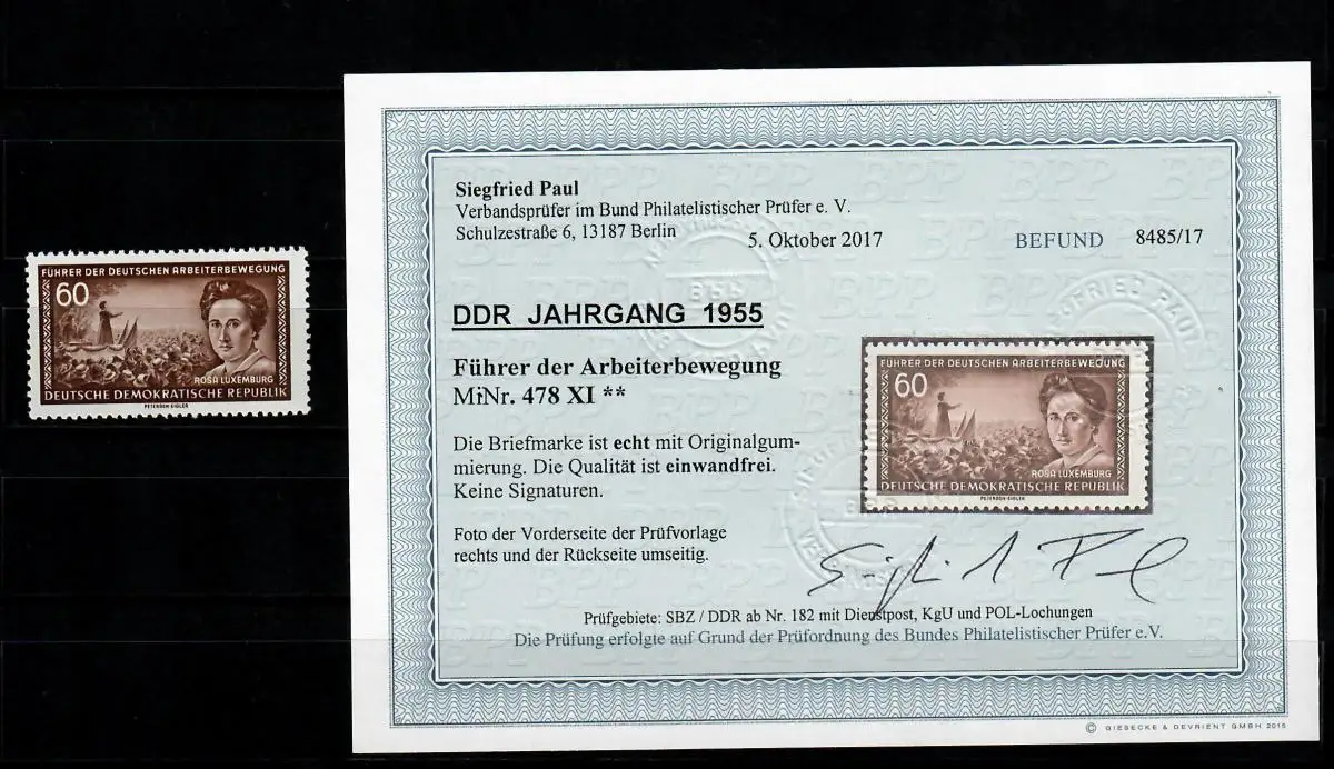 DDR Min. 478 XI, post-free, **, chef du mouvement ouvrier, BPP résultat