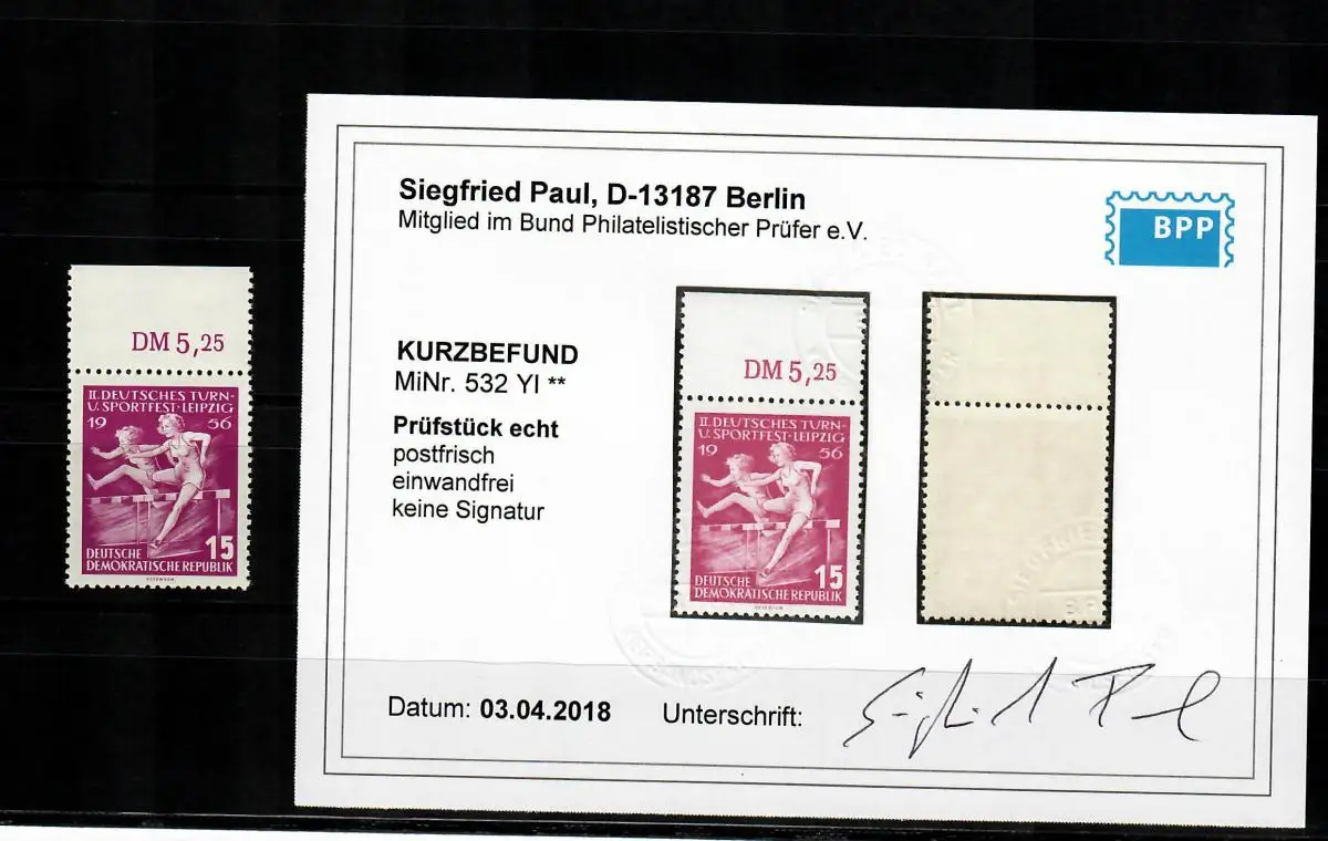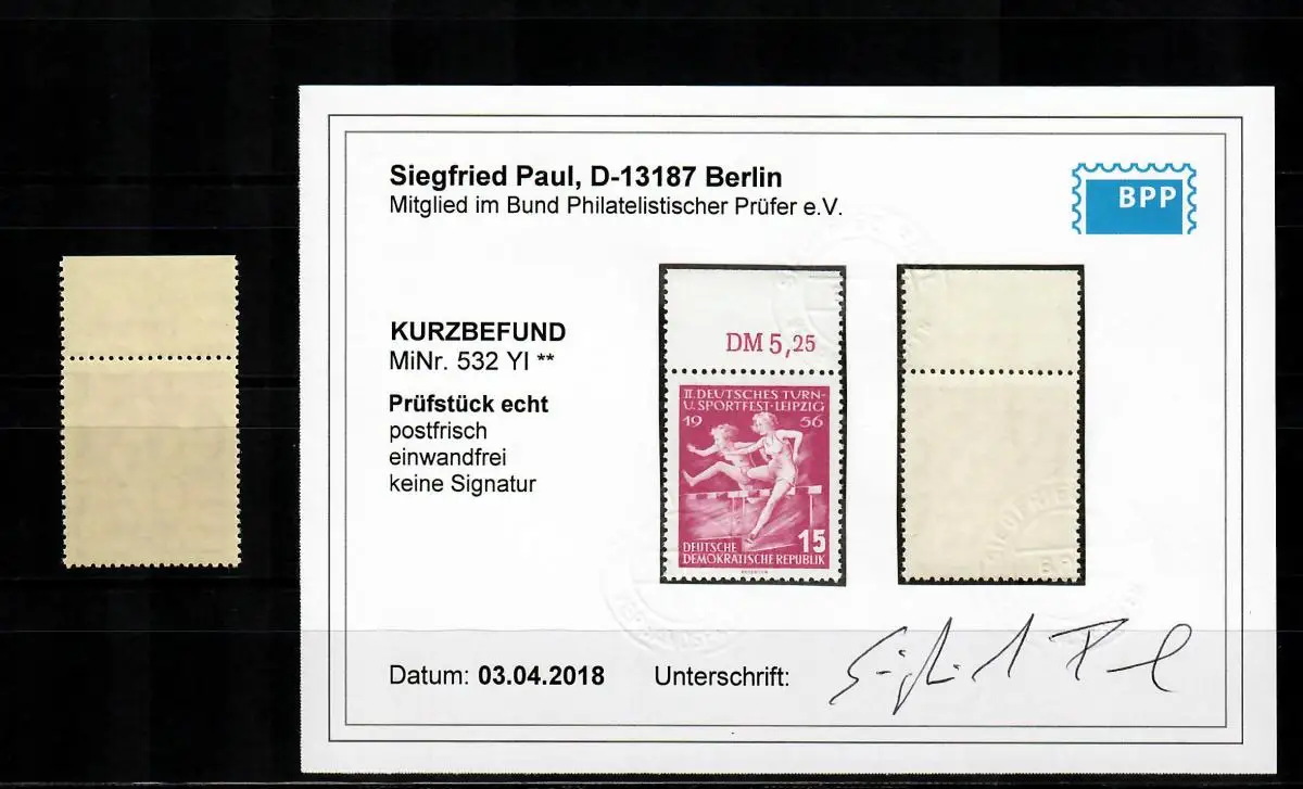DDR Min. 532 YI, du bord supérieur, frais, **, BPP résultat