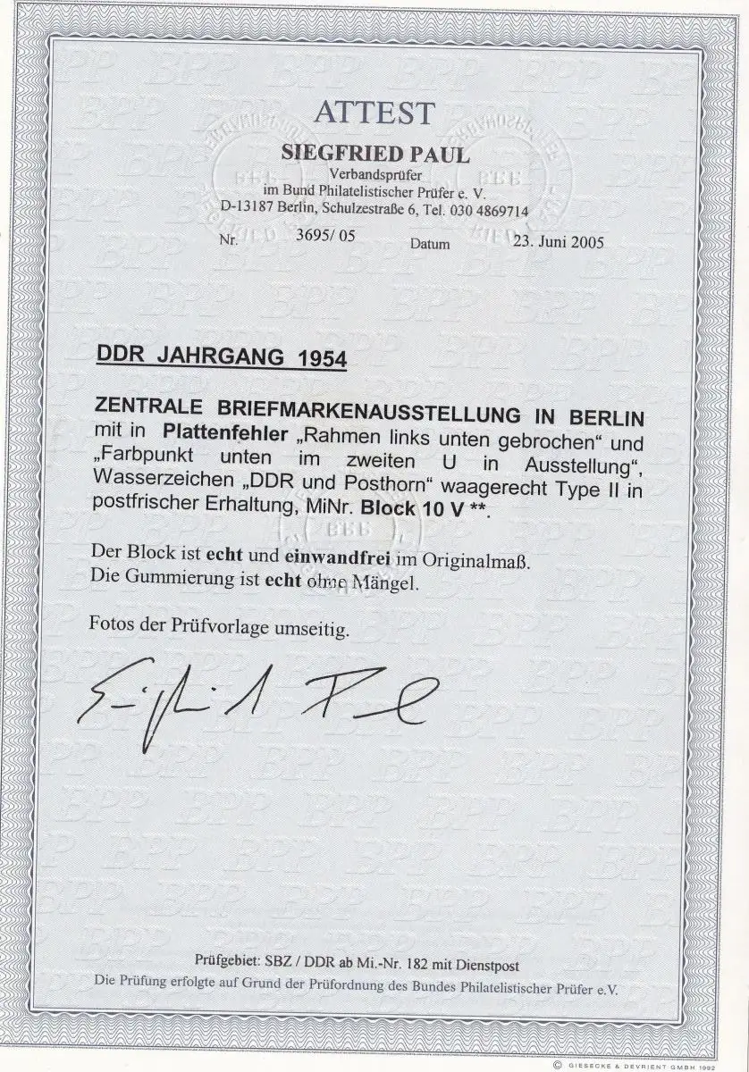 DDR: MiNr. Block 10 V, post-fraîchissement, BPP Photo Attest