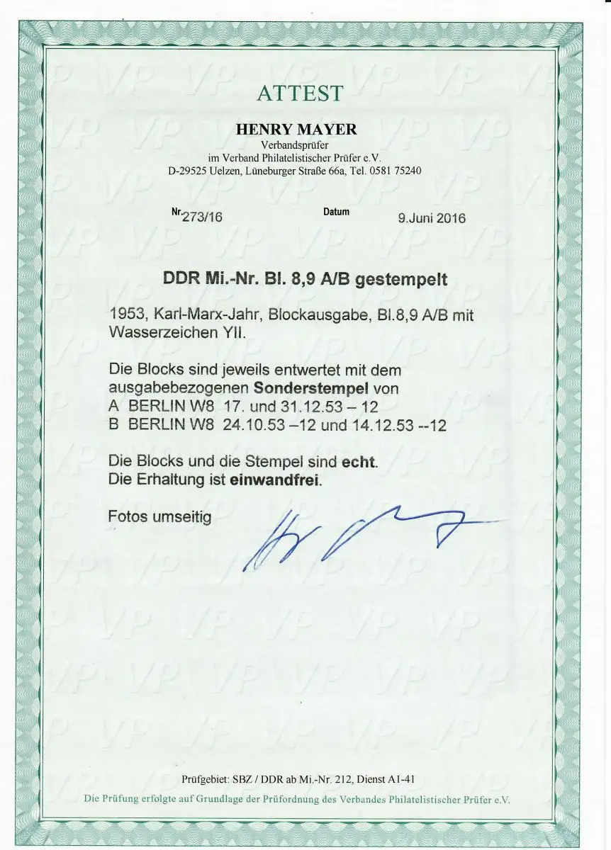 DDR N° de la fiche 8, 9 A/B, cacheté, Wz YII