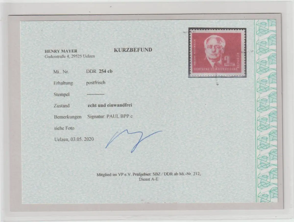 DDR PF/Besonderh.: Pieck 2 DM in Farbe cb (254 cb), **, Befund Mayer