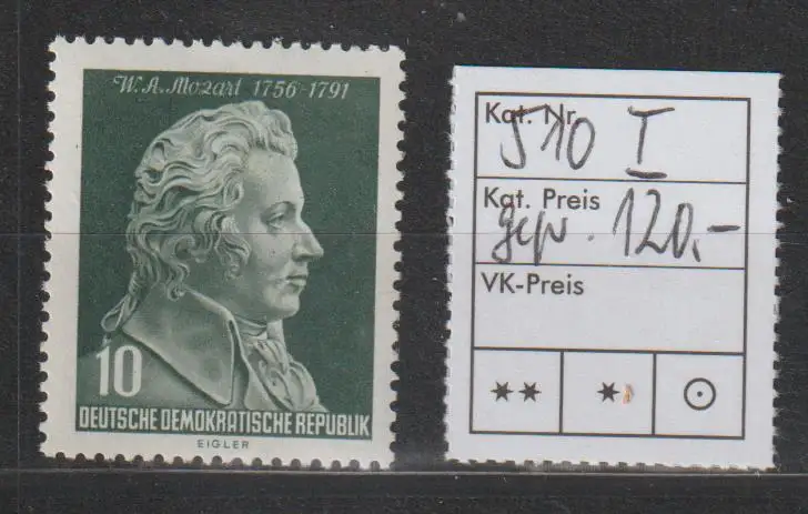 DDR spezial: 10 Pfg. Mozart mit PF I ("Warze auf Backe"), **, gepr.