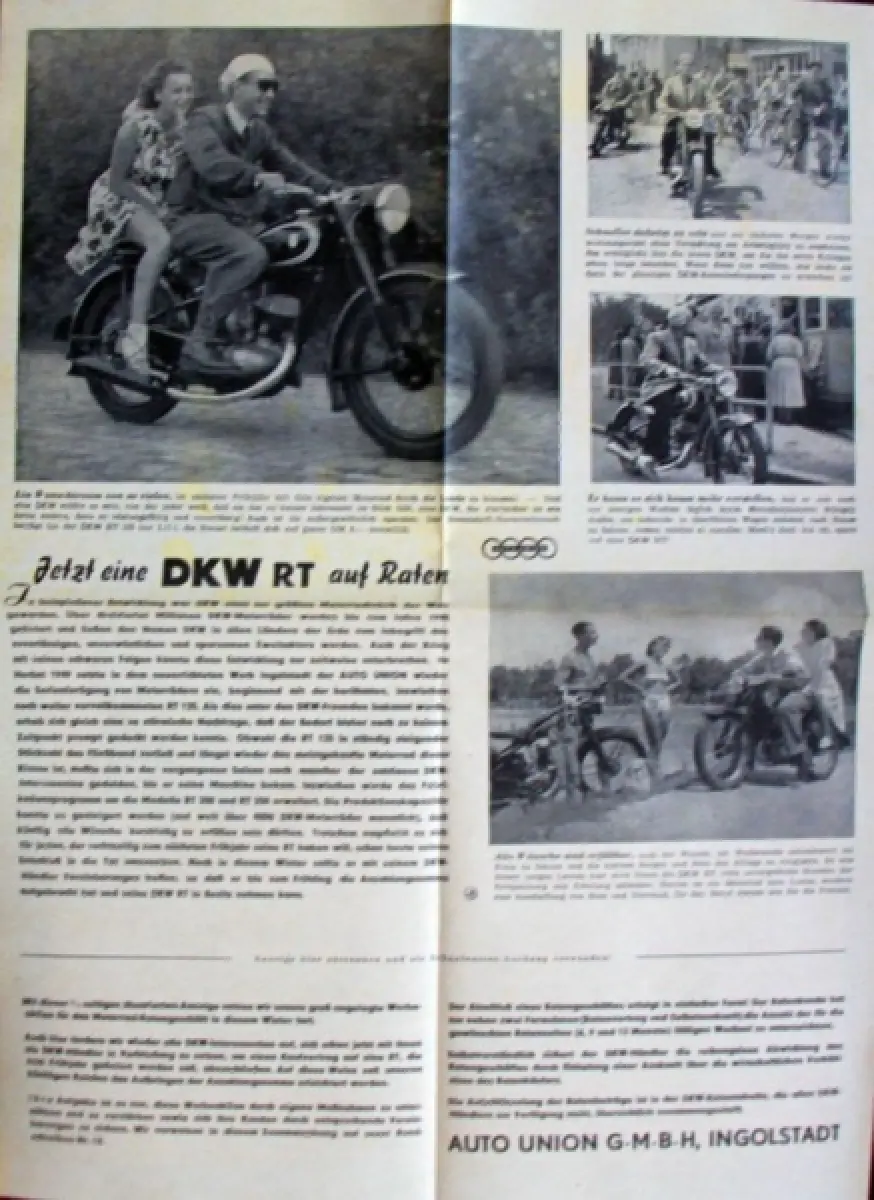 DKW RT Motorrad Modellprogramm 1952 Motorradprospekt (0437)