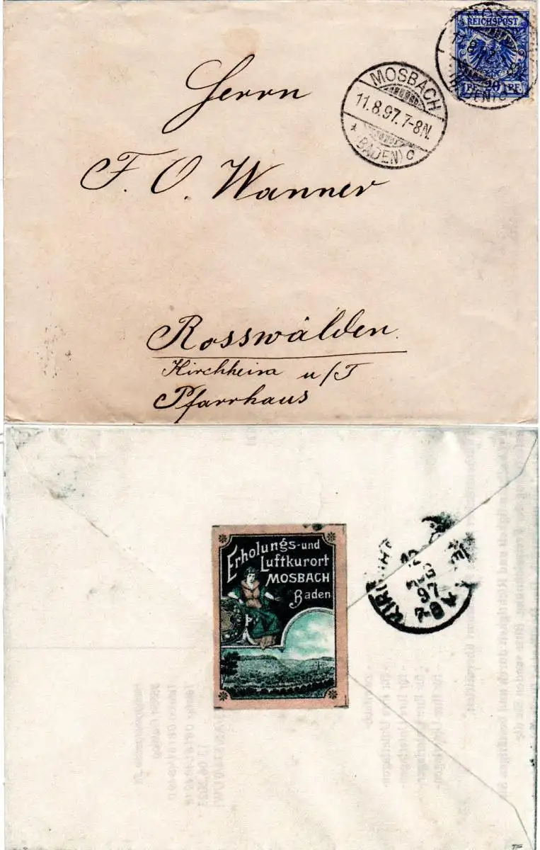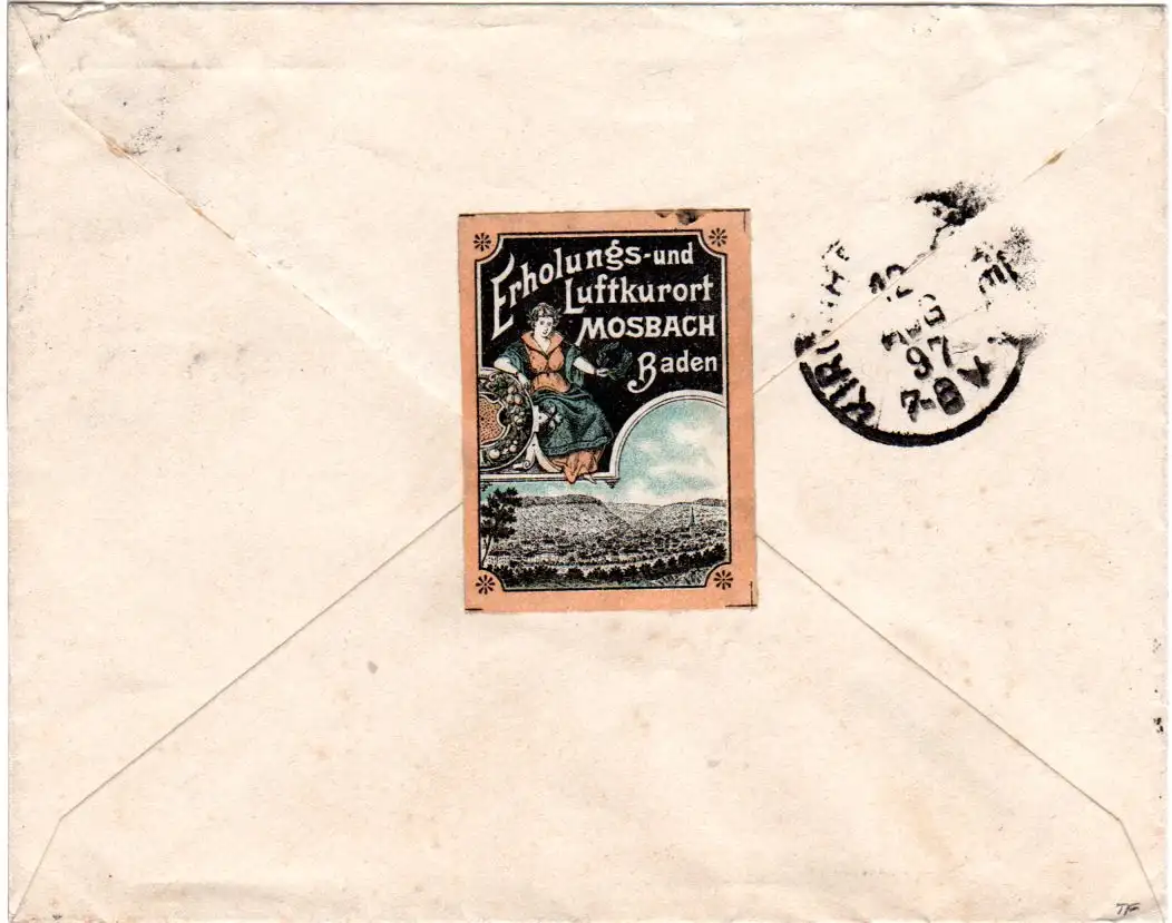 DR 1897, 20 Pf. auf Brief v. Mosbach m. rücks. Werbevignette