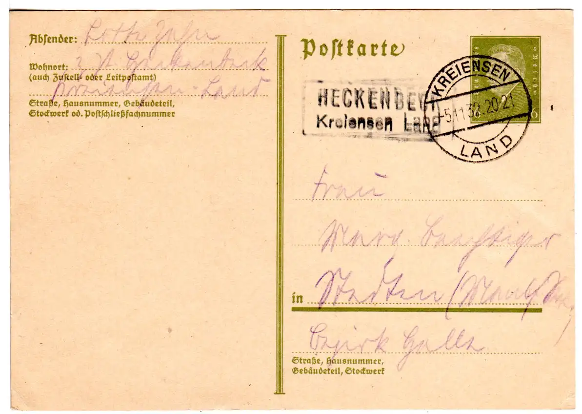 DR 1932, Landpost Stpl. HECKENBECK Kreiensen Land auf 6 Pf. Ganzsache