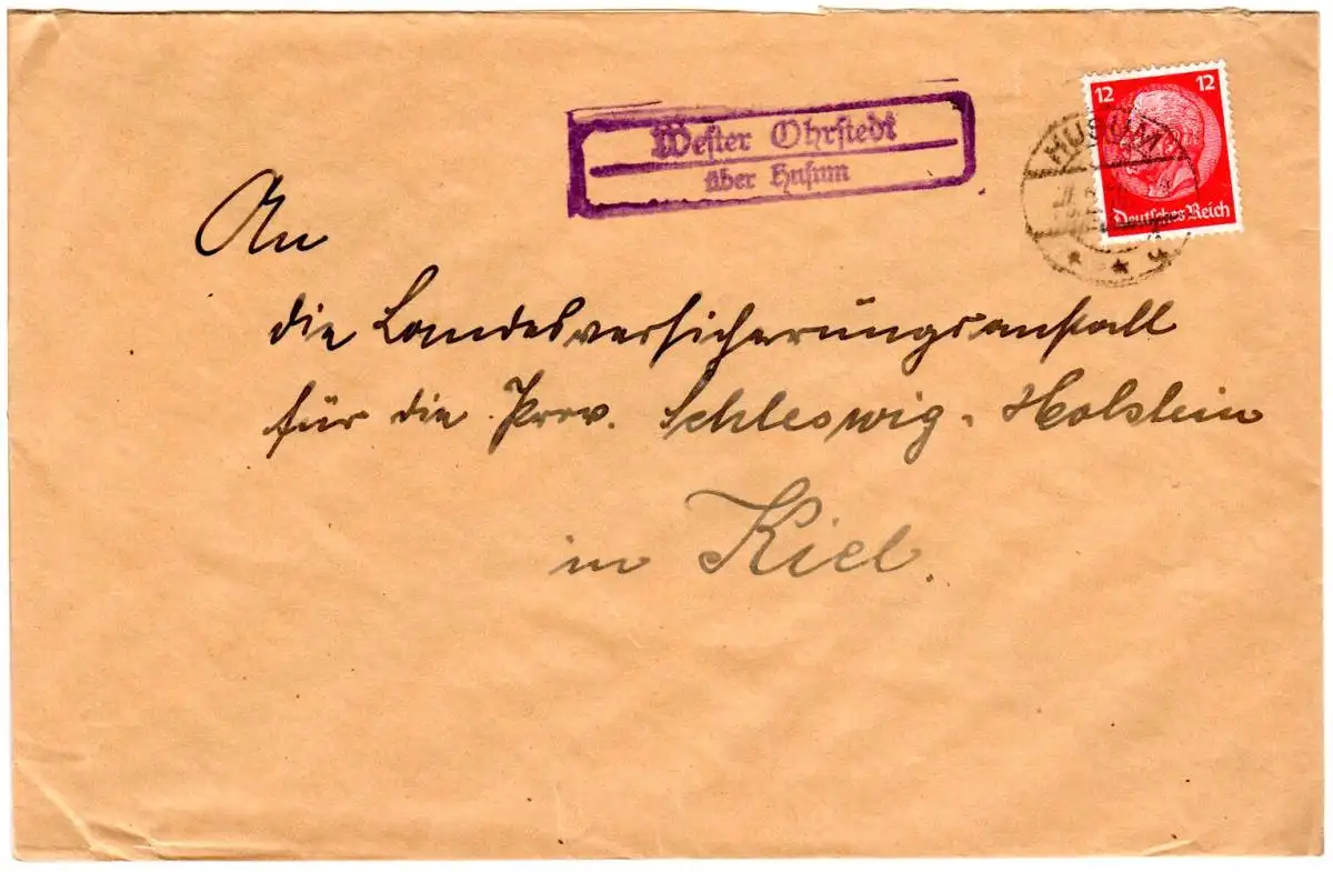 DR 1936, Landpost Stpl. WESTER OHRSTEDT über Husum auf Brief m. 12 Pf.