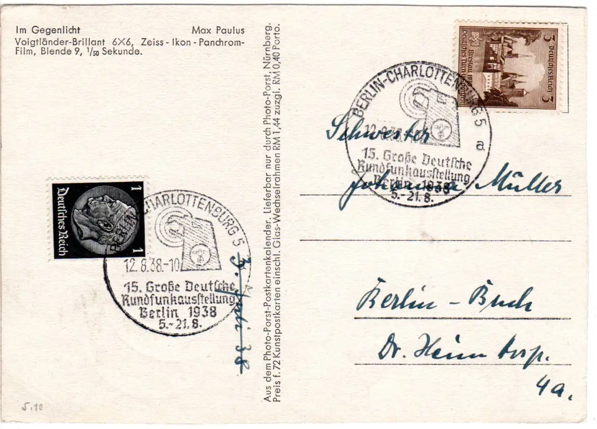 DR 1938, Berlin Sonderstpl. 15. Große Dt. Rundfunk Ausstellung