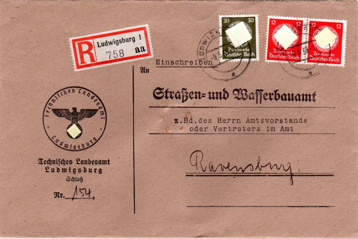 Eingeschriebener Dienstbrief. (Hoheitszeichen f. scan abgedeckt)