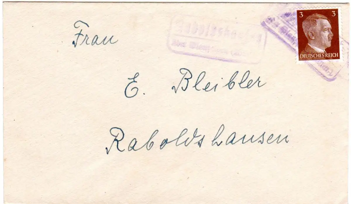 DR, Landpost Stpl. RABOLDSHAUSEN über Blaufelden als Entwerter auf Brief m. 3 Pf