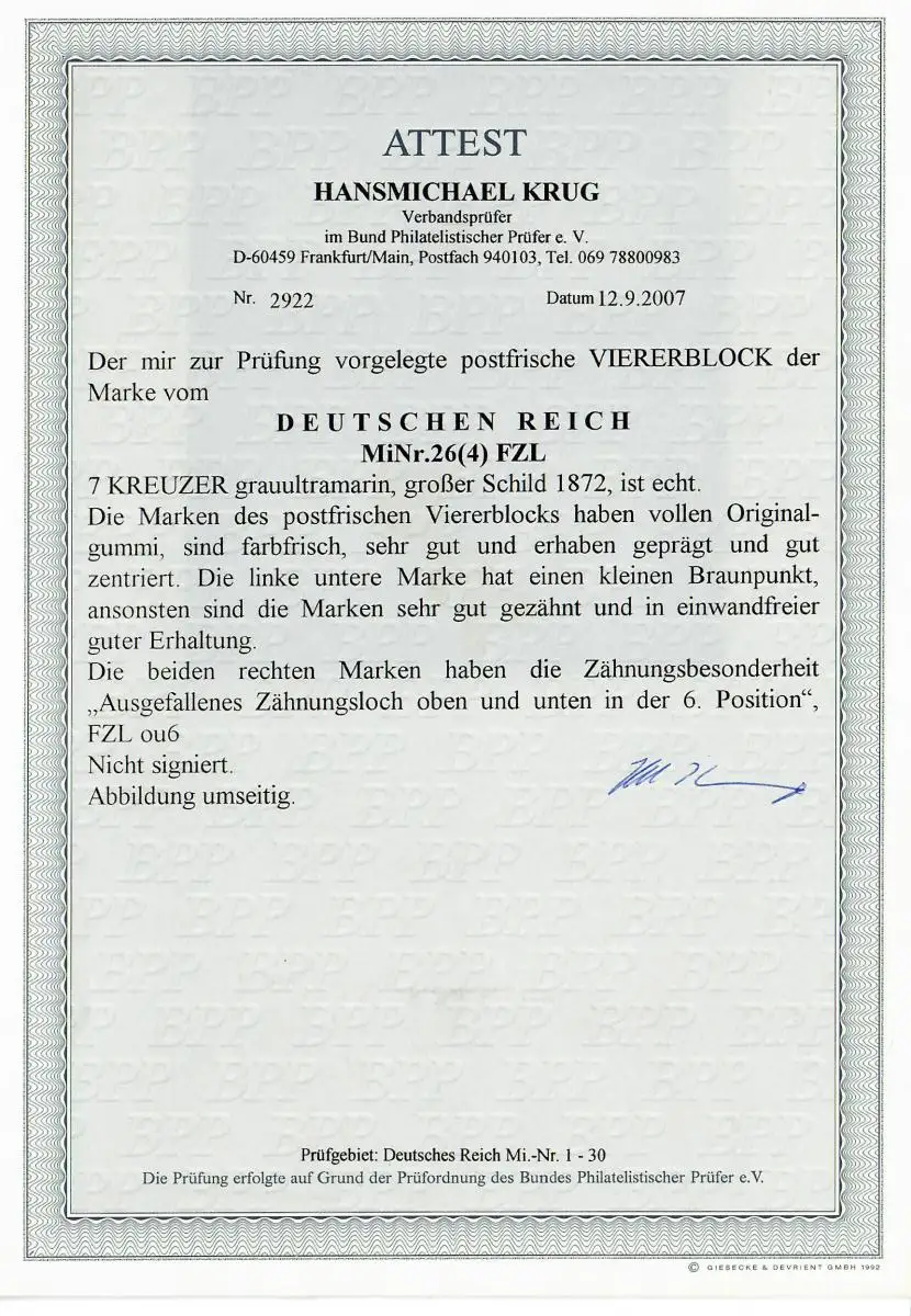 DR: Min. 26, 4 blocs, frais de couleur, avec FZL ou6, frais, **, BPP Attest