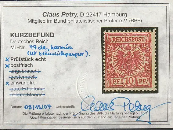 DR Nr. 47 in der Farbe da, postfrisch, Befund