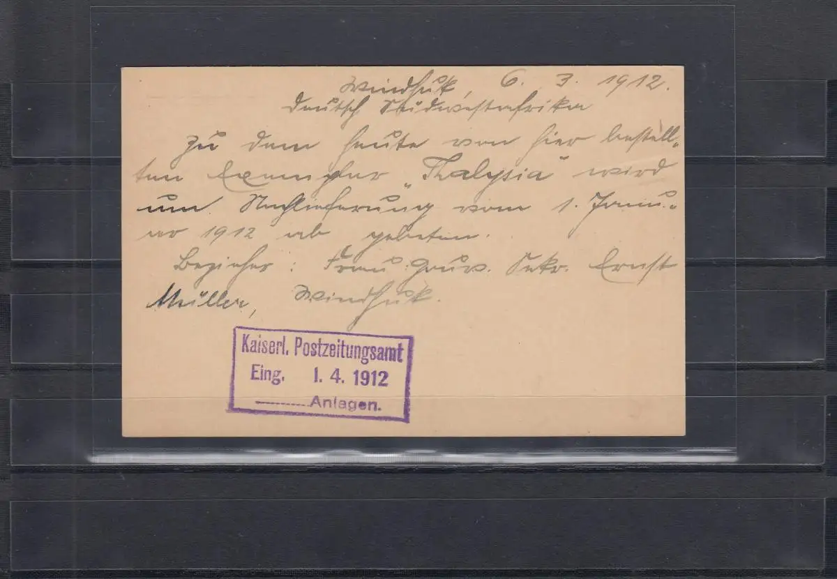DSWA 1912: utilisation tardive du cachet Windhuk à la Poste de Leipzig