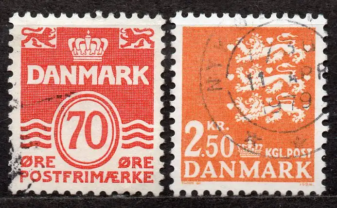 Dänemark, Mi-Nr. 525 x + 526 gest., Wellenlinien + kleines Reichswappen