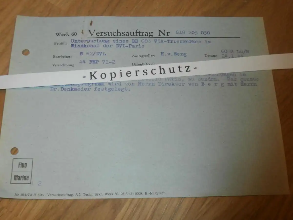 Daimler Benz - Versuchsprogramm 1944 , Flugzeugbau , Backnang DB 603 Motor , original Dokumente , Flugzeug - Forschung !