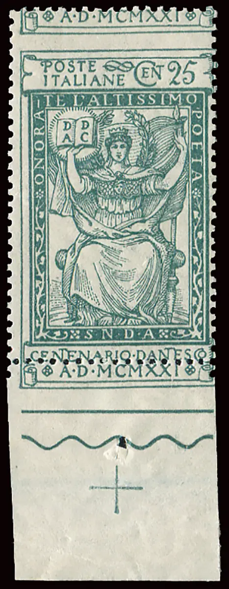 MH Linguellato - Dante Cent. 25 Nr. 117 stark nach oben verschobene horizontale Verzahnung b. von f. - leichte Linguella-Spur Cod. 138/15